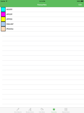 - Favourites: Add your favourite colors to this list and you can see them EVERY DAY!