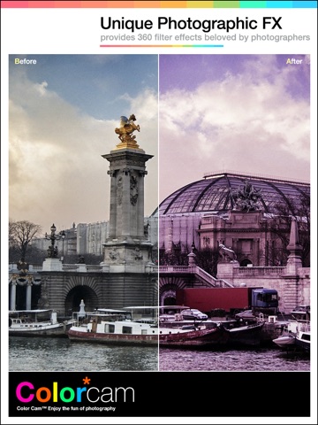Color Cam 360 Plus provides 460 filter effects beloved by professional photographers, all conveniently packed in 10 different themes. Color Cam 360 Plus themes vary from the feel of film camera to the unique sets of classy moods or fun creativity, Its time to make things look different!