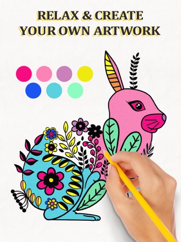 - Color beautiful animals, flowers, mandalas, ladies, ocean creatures and mysterious patterns.