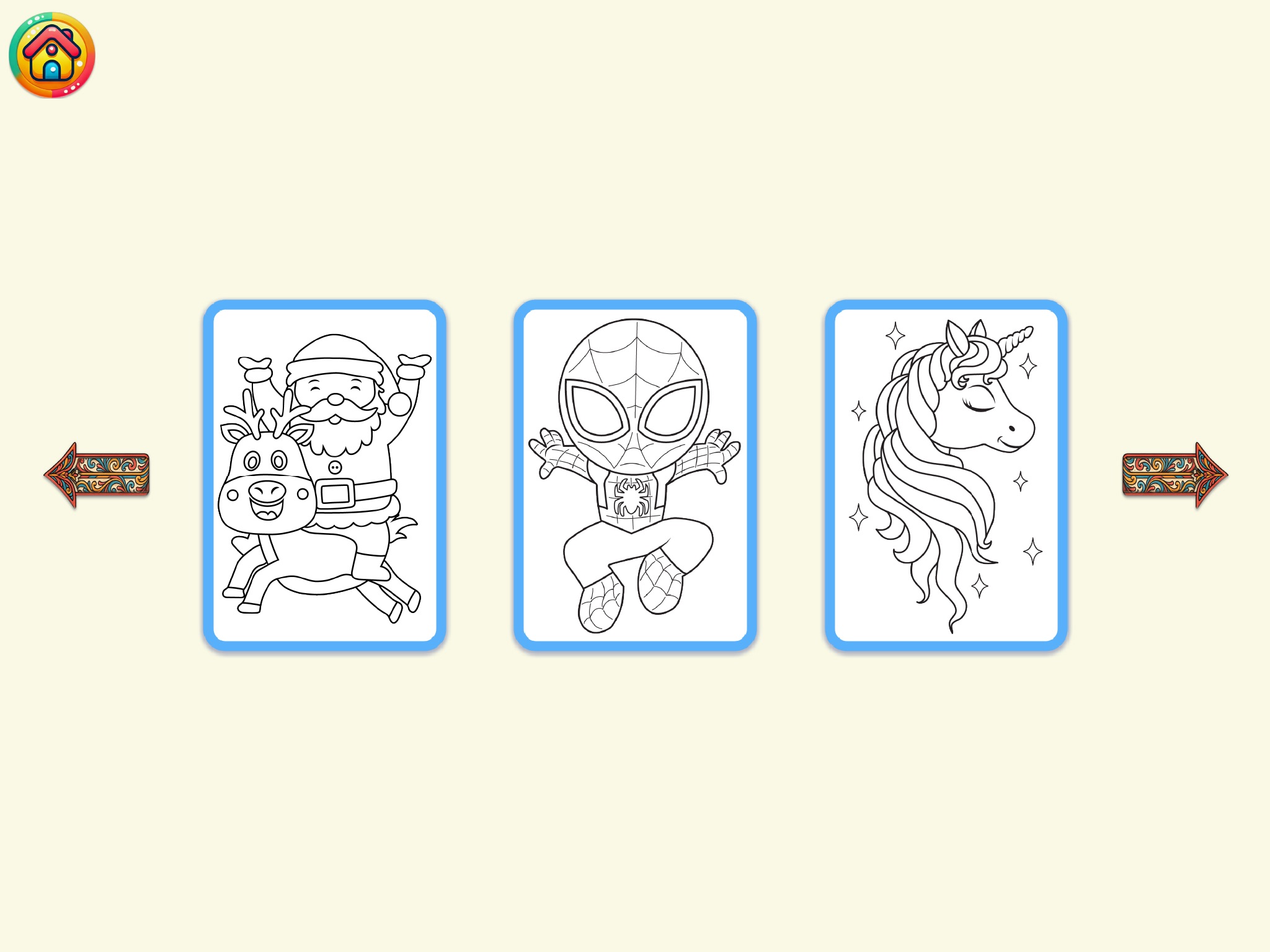 ◉ Coloring Pages – Dive into themes like animals, princesses & unicorns.