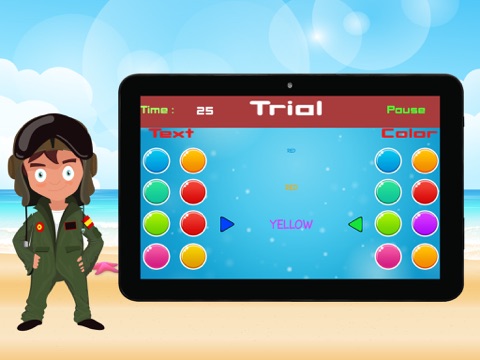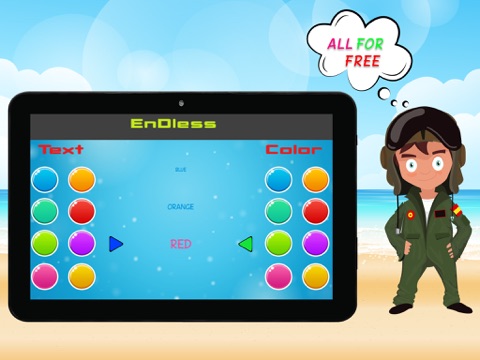 2. Endless : In this mode according to stage select ,color with text come kids have to select right color with right text.