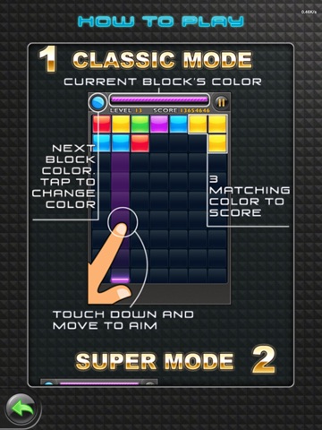The game play is very simple yet addictive. Just tap the screen & move to aim. Lift your finger to release new color block and shoot it to the right cell in the grid. In the top of the grid, the current color and next color block will be showed. Pay attention to arrange and shoot the block with same colors to clear them off the grid. Your target is to clear as much blocks as possible while the lines are continuously pushed up. Try to get the bonus & combo as they’re not only helpful but also earn you many extra points.