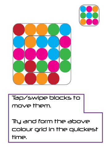 Your goal: Move the colored blocks around to form the inner grid of colors that is shown!