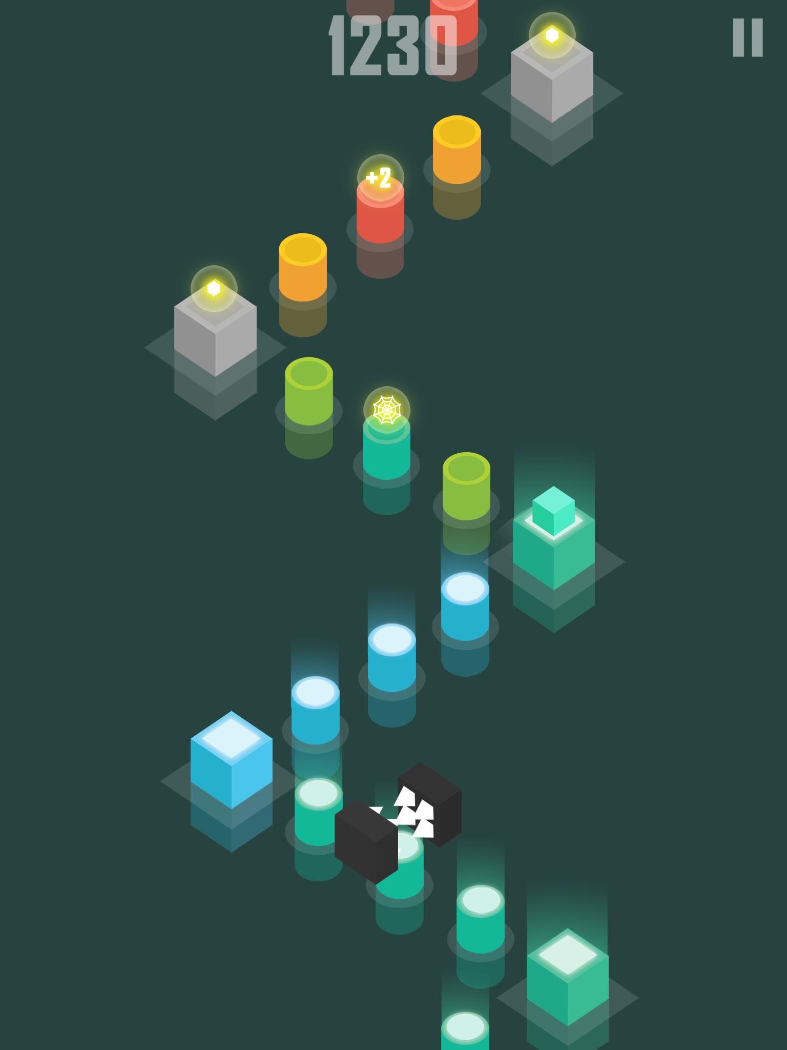Flee to jump to the pillar of the same color as fast as possible.