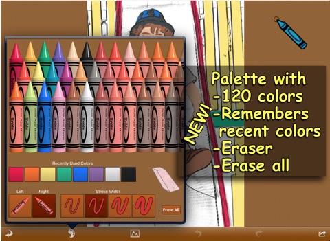 • A palette of 120 crayons to color with and an eraser to correct mistakes