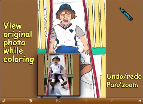 Color My World is the coloring book app with a TWIST! In addition to the dozens of included coloring pages, you can create your own pages from any photo, sketch your own pages, or just start with a blank page.