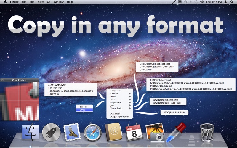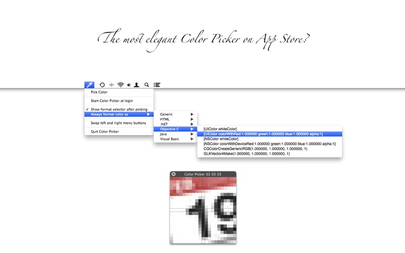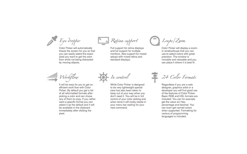 Simple, cheap and gets the job done with easines and precision. The one click conversions from the color picked for Java/Html/Objetive-C are really handy