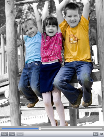 Creating color shine images is as easy as drawing with your finger. You start by taking a photo with your camera and load it as a grayscale image. Use your finger to recolor parts of the image. Zoom into the image for detailed painting or use the erase mode to remove the colors again.