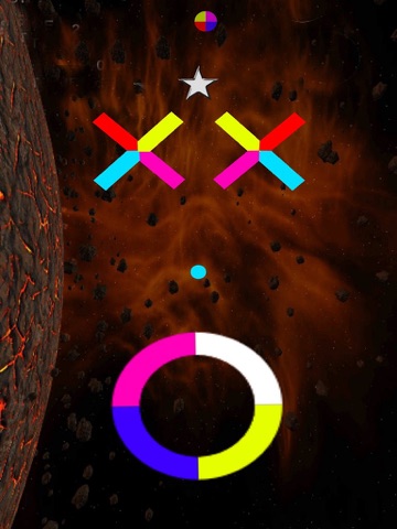 Tap the ball to go through the obstacles, carefully observe the color of the ball because it use to change randomly and then let it pass the obstacle.
