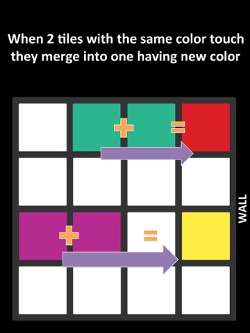 - When 2 tiles with same color touch, they merge into one which has new color.