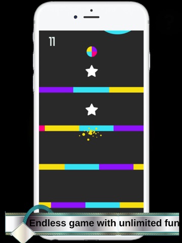 Tap the ball carefully through each obstacle and your ball will switch color with some powerups.