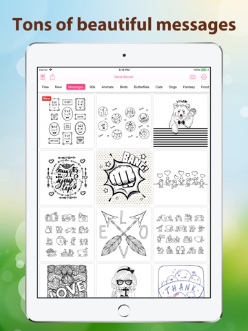 • Send secret with a colouring page directly in the app and your friends colour it in iMessage. You get a read receipt with a coloured page once they read the secret message.