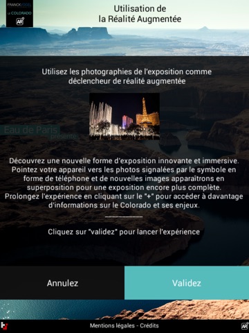 Utilisez votre appareil pour suivre lexposition et découvrir des photos inédites, en superposition des photos présentées dans lexposition "Colorado".
