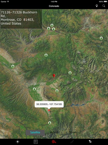 Search nearby POI’s like Campgrounds, RV’s, Picnic Areas, etc., on map.