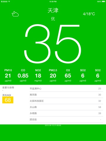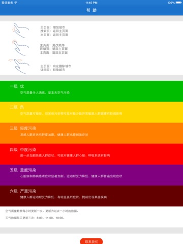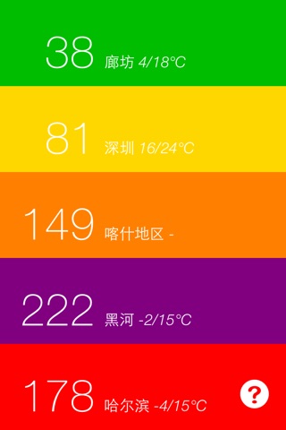 除用数字显示空气质量指数外,更以相应的颜色直观显示空气质量,数据支持全国近400个城市。