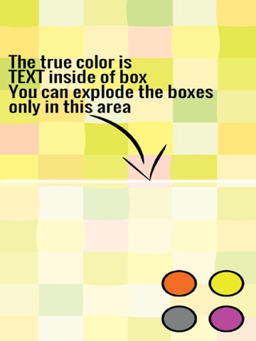 Are ready to challenge your color knowledge, sense and timing? Explode the boxes by clicking the color button according to the text written in the box. And remember, you can only score in the shiny zone.
