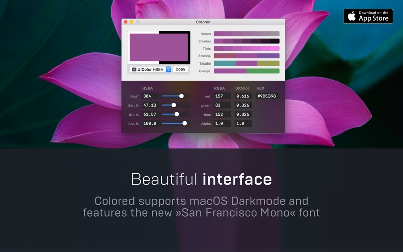 Color UI is an app to explore vivid colors and convert them into various formats. Tailored for the needs of Designers and Developers.