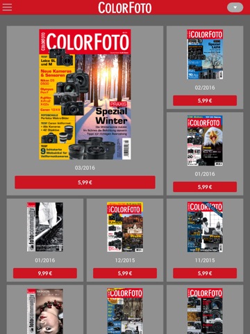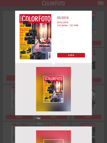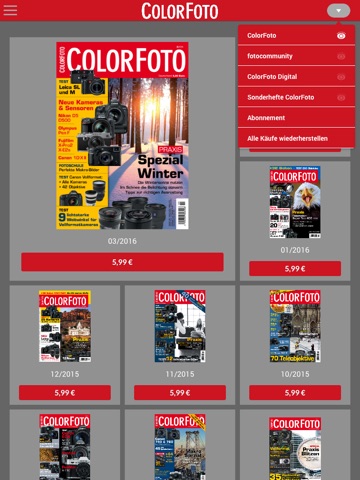 Sie können in der App sowohl ein Abonnement für die ColorFoto abschließen als auch Einzelhefte erwerben: