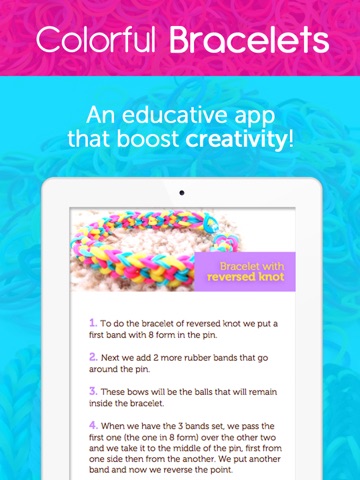 With this new app you will learn thanks to detailed tutorials the best and more new designs. Step by step we will explain to you in the simplest way to create in little time the different types of bracelets.