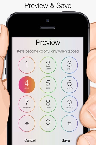 This is done by setting a special wallpaper to your device, perfectly aligned to maximise the colors for your native iPhones phone app keypad. iOS 7s built in translucency allows your iPhones wallpaper to be shown behind your keypad - and this is how the magic is done :)