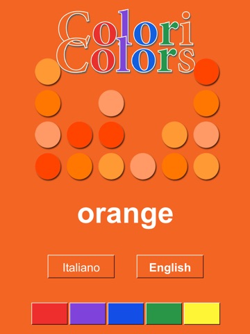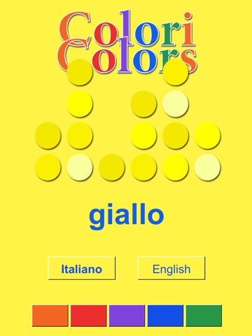 By clicking on the Italiano or English button, one hears that color spoken in the specific language and a visual of animated dots in different hues of that color.