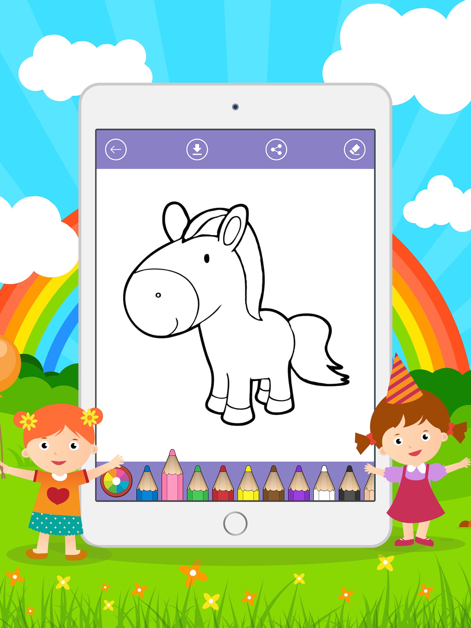 Please remember to be a responsible parent - do not overuse this app in a "keep kids busy all day long" mode. As a parent of three (1y, 7y, 10y old) I know this can be tempting. But it is better if you play together with them, use Coloring Book app to make a coloring contest, make an e-card that is sent over an email to a friend, colleague from school or a distant relative.