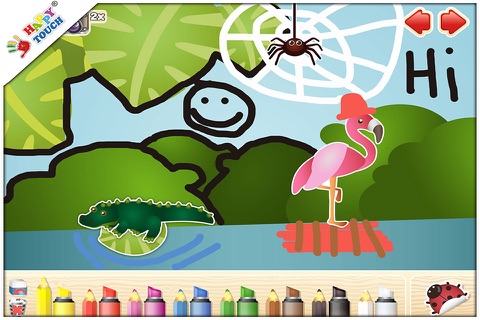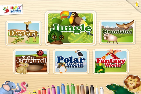 Hey, will you draw us a picture? Here are lots of colorful backgrounds for you to color in. It comes with great colors and now even includes sound stickers with the most popular Happy Touch animals! From simple drawing for small children to sticker pictures for bigger kids...this coloring book with 6 different theme worlds is waiting for your fantasy to take over.