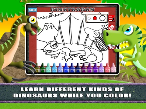 Enjoy a cherished dinosaur experience while coloring 18 awesome pages of these prehistoric lizards with Coloring World! In this wonderful coloring book app, children can choose from 35 different colors and learn the many different types of dinosaurs at the same time.