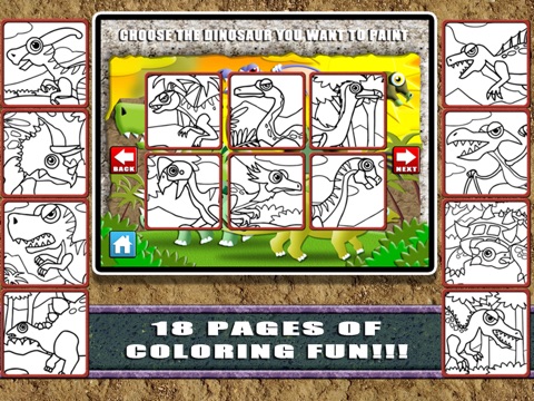 - 18 total Dinosaur Coloring pages (6 free and the rest are unlockable through an upgrade IAP)
