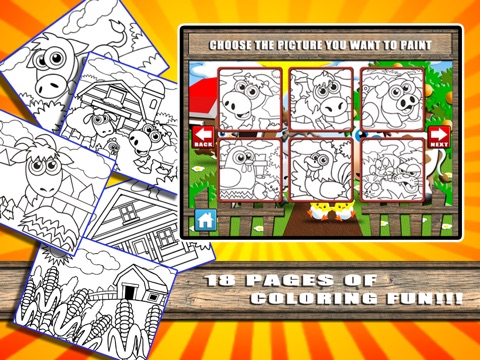 - 18 total Farm Animal Coloring pages (6 free pages and 12 unlockable pages with an in-app purchase)