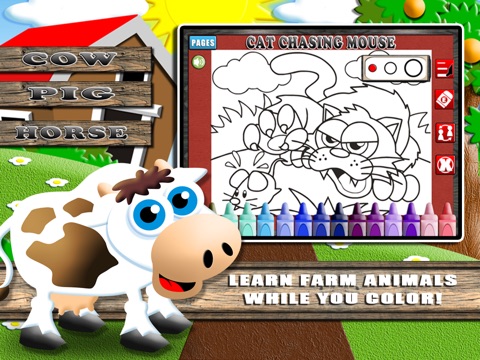 Enjoy a cherished farm animal experience while coloring 18 awesome pages (note: 6 free pages and 12 unlockable pages) of animals with Coloring World! In this wonderful coloring book app, children can choose from 35 different colors and learn the many different farm animals at the same time.