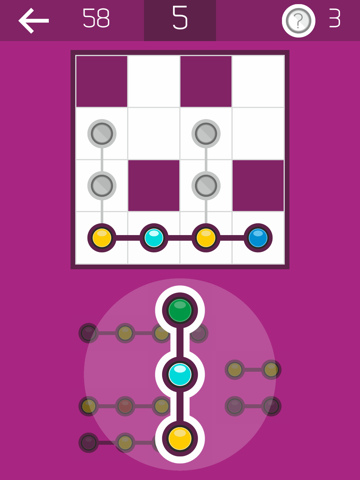 * This game resembles both a puzzle and a crossword game. But instead of letters in words, you will be matching links of colored balls. The goal is to position all links inside the game space so that same-colored balls match at the crossing of these links.