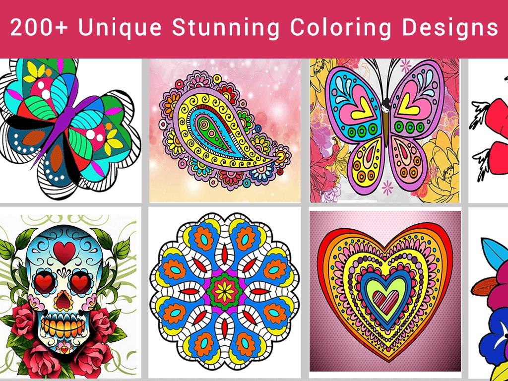 Let the colors fill your mind in a relaxing painting experience, Colorment Color Book features over 200+ unique coloring pictures to help you rest your mind.