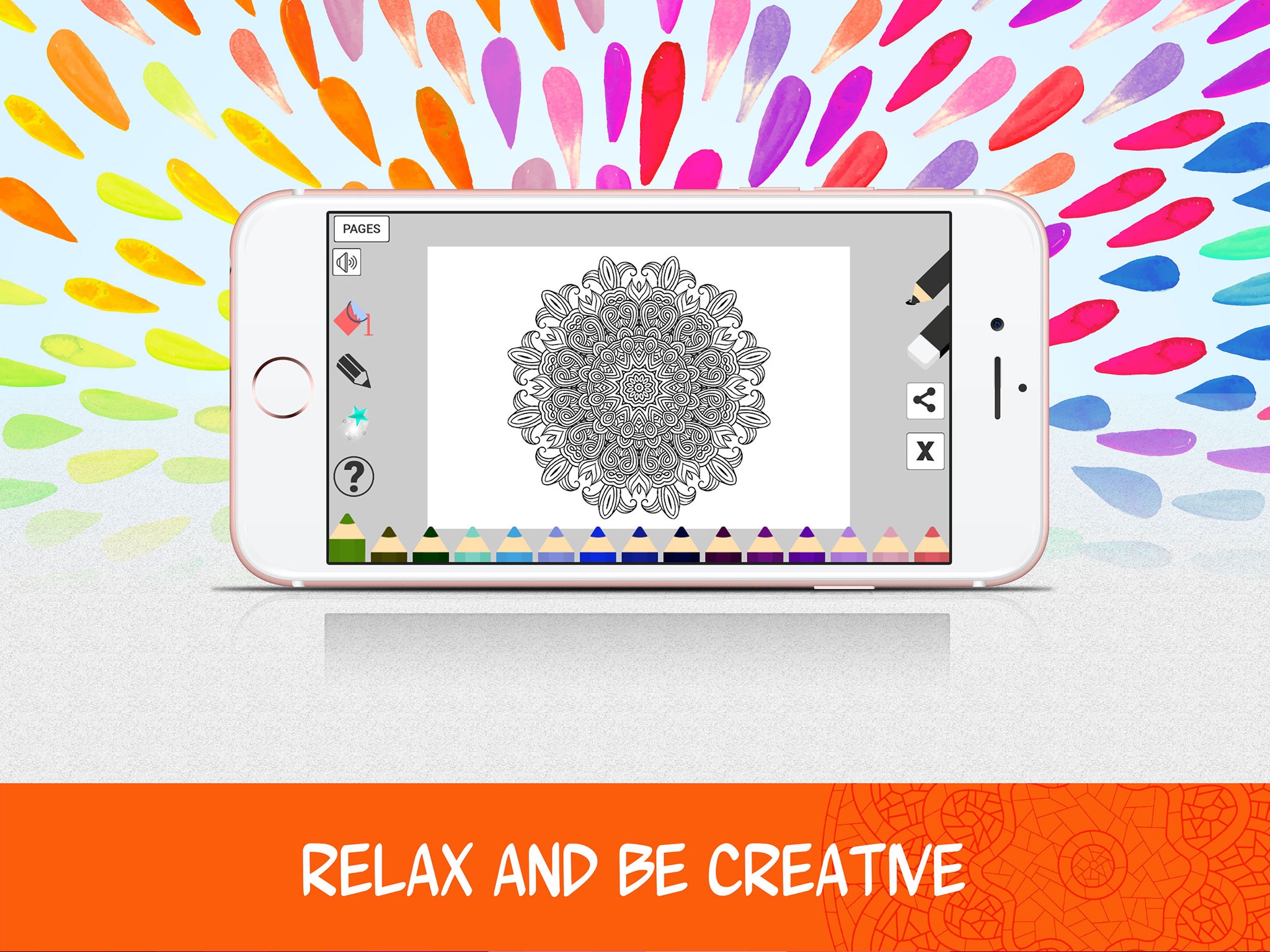 Let the colors fill your mind in a relaxing drawing experience.