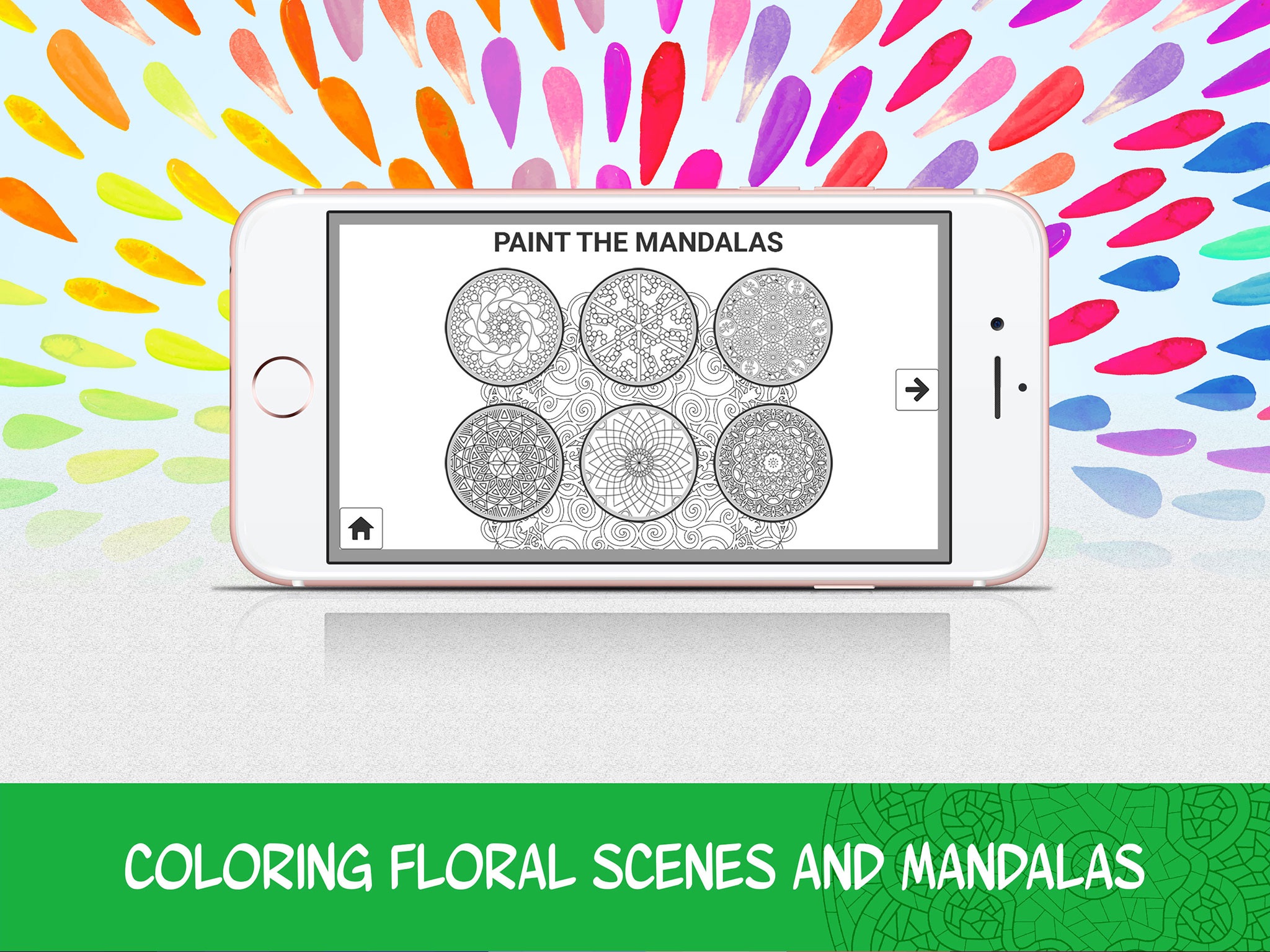 - Galleries include FLORALS and MANDALAS,