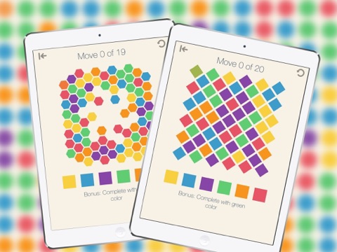 The goal is simple – to paint the whole game board with one shade in given moves. Red, Orange, Yellow, Green, Blue or Violet … Think twice, and choose the correct one that will enable you to pass the level without exceeding maximum moves.
