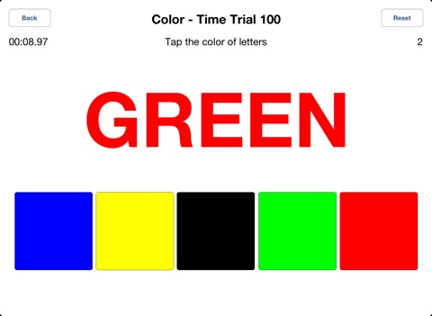 - Color (medium): Tap the button of the same color as the color of letters (ignoring the color name word).