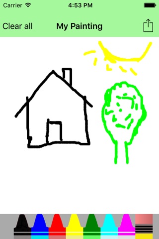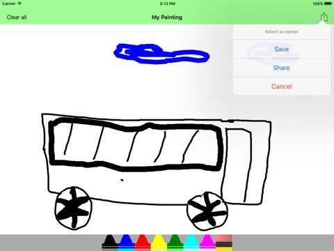 Save your painting to your photos, send it to your friends using iMessages, email or share it with your friends on Facebook from the app.