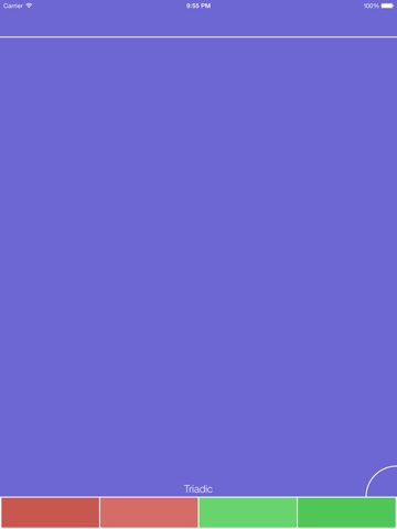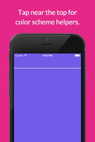 Tap near the top to toggle through analogous, monochromatic, triadic, or complementary color scheme helpers. Long press near the top to set the main color manually. Shake the device when the manual color picker is open to get a random color.