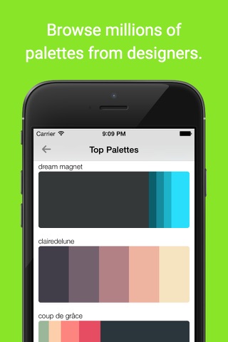 Find colors in a new way. Drag your finger on the screen to stumble upon colors or browse millions of palettes. Great for designers and artists.