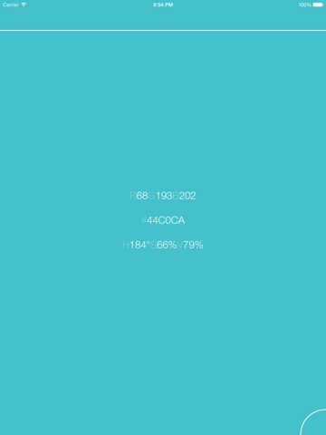 Display RGB, hex, and HSV information by tapping in the middle of the screen. Click on the circle in the bottom right for more features and to review the instructions.