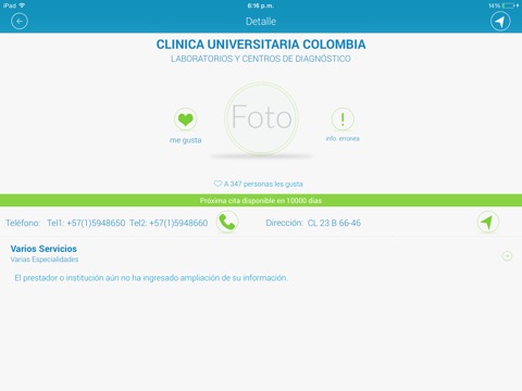 - Acceder al Directorio Médico, ver la ubicación y la ruta más rápida. También vas a poder calificar tu experiencia