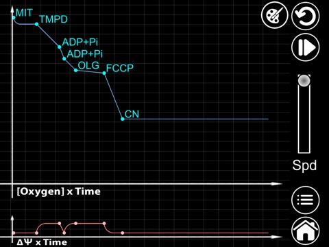 The COM App simulates oxygen consumption by isolated mitochondria. Substrate combinations and inhibitors can be simulated. COM simulates functional information obtained from isolated mitochondria. Simulations results are shown in two graphs.