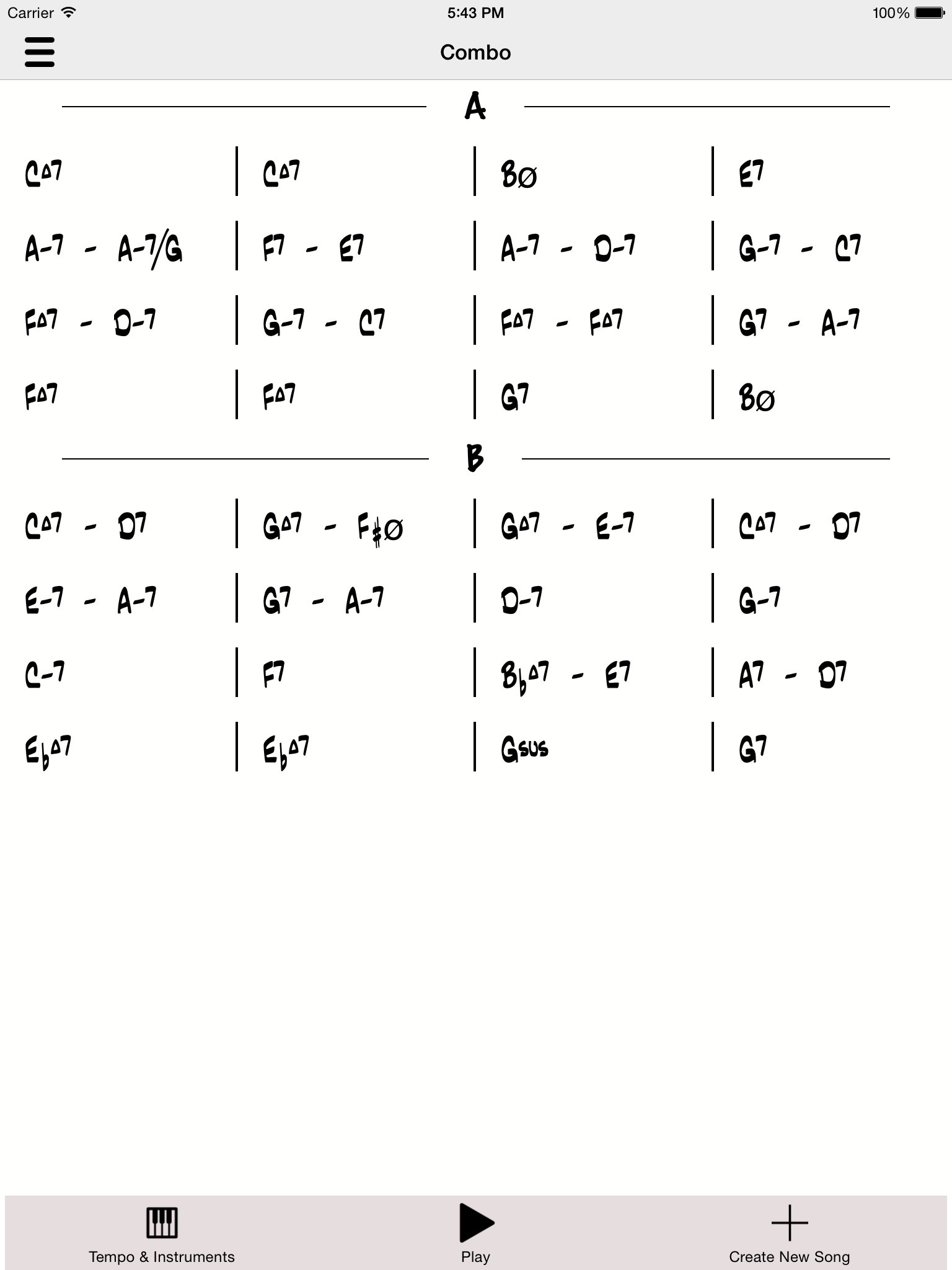 Combo is like having a jazz combo to practice with on your device. It automatically generates music and chord charts for you to practice with.