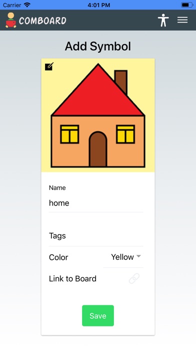 - Add images to symbols from your camera or files.