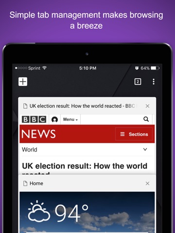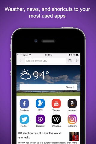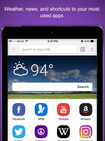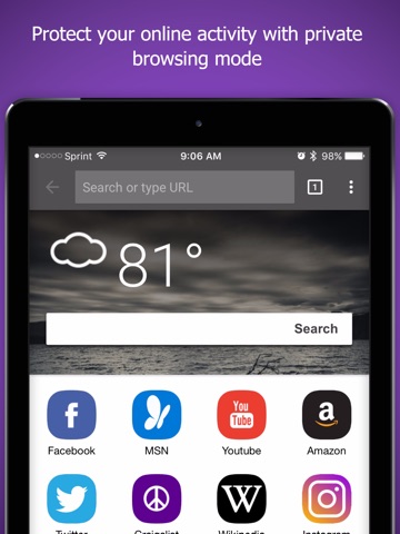 Reduce page load times and protect your privacy with private browsing. Comet Browsers homepage is full of rich content, keeping your favorite apps as well as weather and news a single tap away!