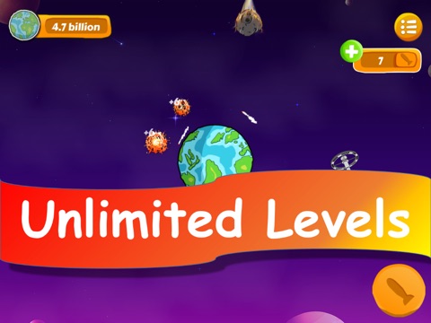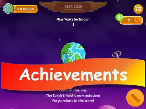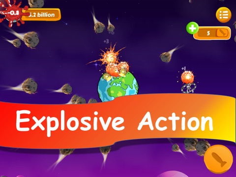 As a Commander of an Interstellar Space Station orbiting Earth Your mission is to destroy approaching Comets in order to save the Population of Earth. Each year after the game starts an increasingly larger wave of Comets threatening Earth needs to be destroyed. How long can YOU save Earth until all hope is lost and the human race is extinct?