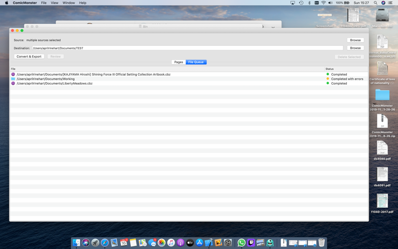This application will easily convert your comic book archive files into pdfs for viewing without a comic book viewer. You can convert multiple files or directories at one time. If you choose to convert one file at a time, you can rearrange or delete images if desired.