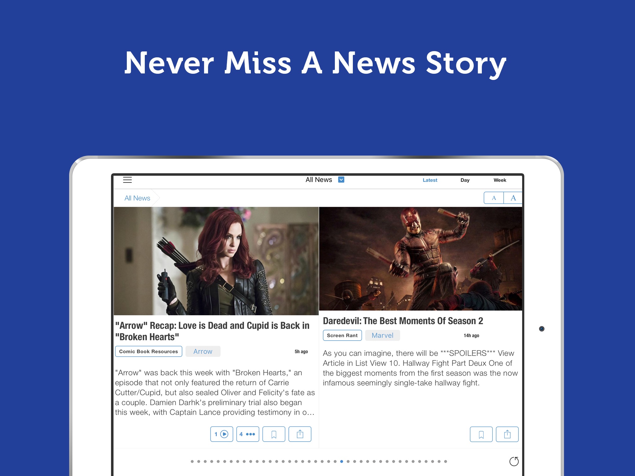 * A clean feed with no repeat stories - see all- sources that covered any story with a single click