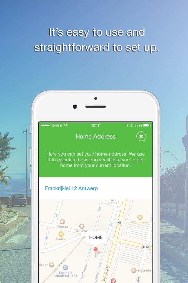 Its not only straightforward to use, its also easy to set up. Just enter your home address, select one or more contacts from your address book and youre good to go!